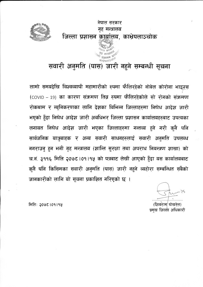 © सर्वाधिकार सुरक्षित जिल्ला प्रशासन कार्यालय, काभ्रेपलाञ्चोक