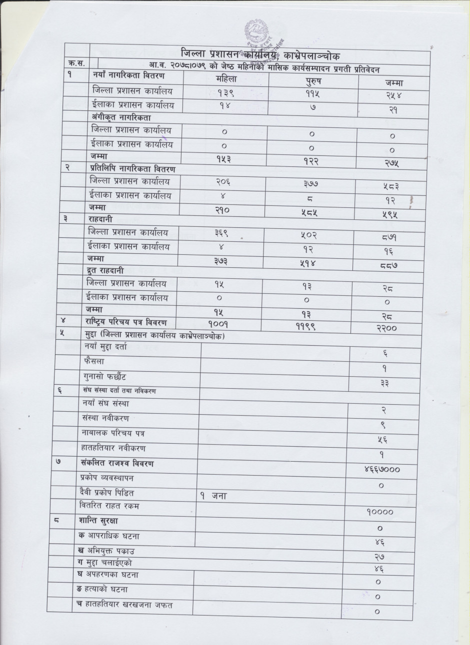 जेष्ठ महिनाको मासिक प्रगति विवरण