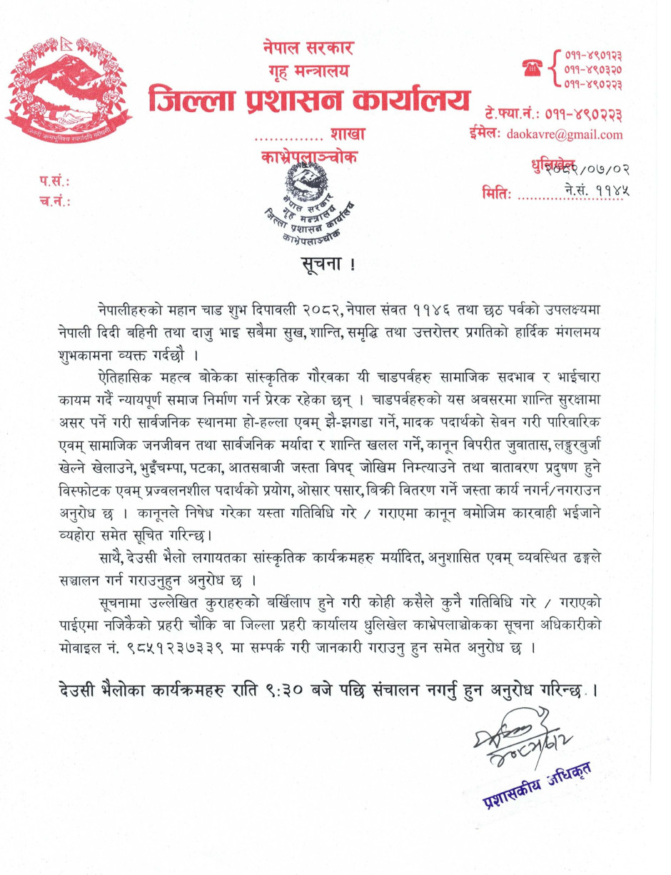 © सर्वाधिकार सुरक्षित जिल्ला प्रशासन कार्यालय, काभ्रेपलाञ्चोक
