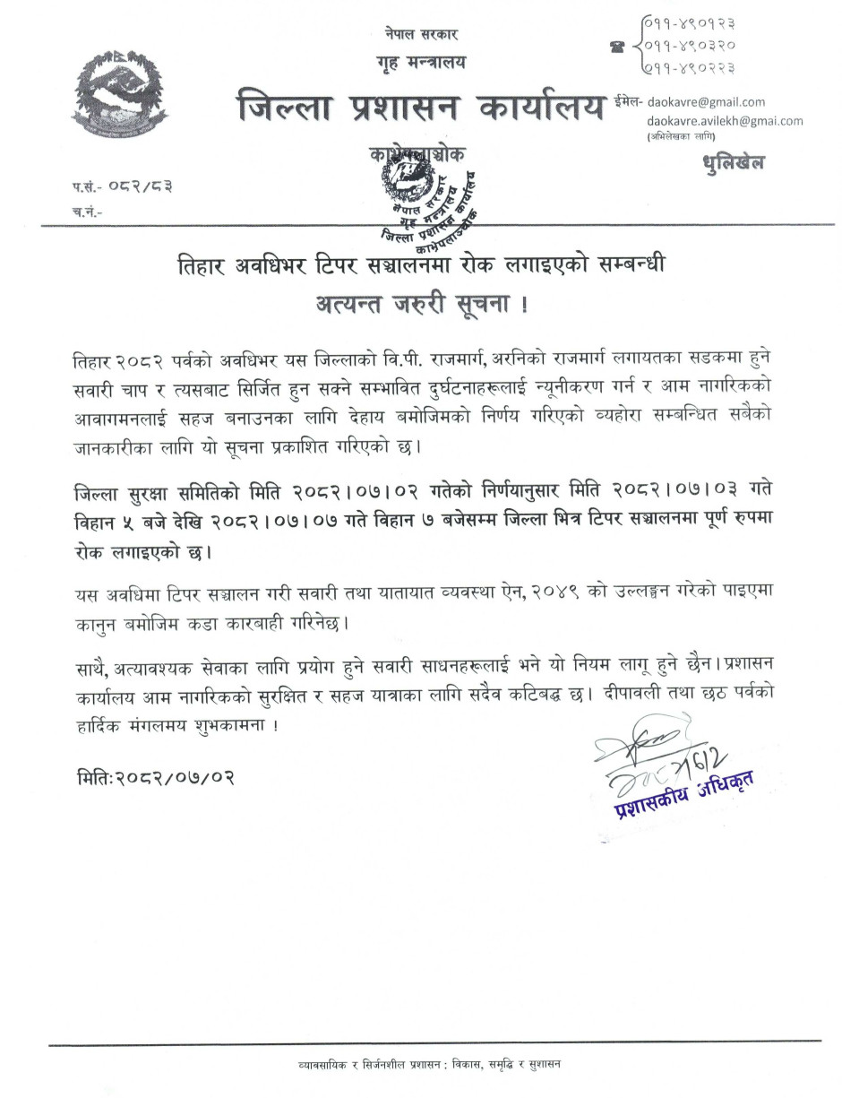 © सर्वाधिकार सुरक्षित जिल्ला प्रशासन कार्यालय, काभ्रेपलाञ्चोक
