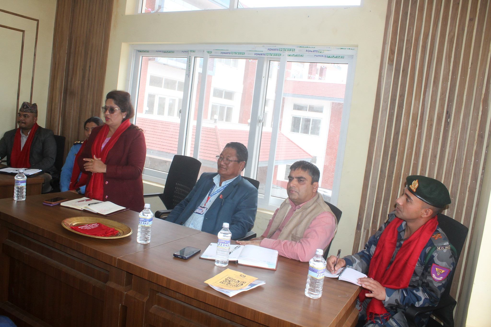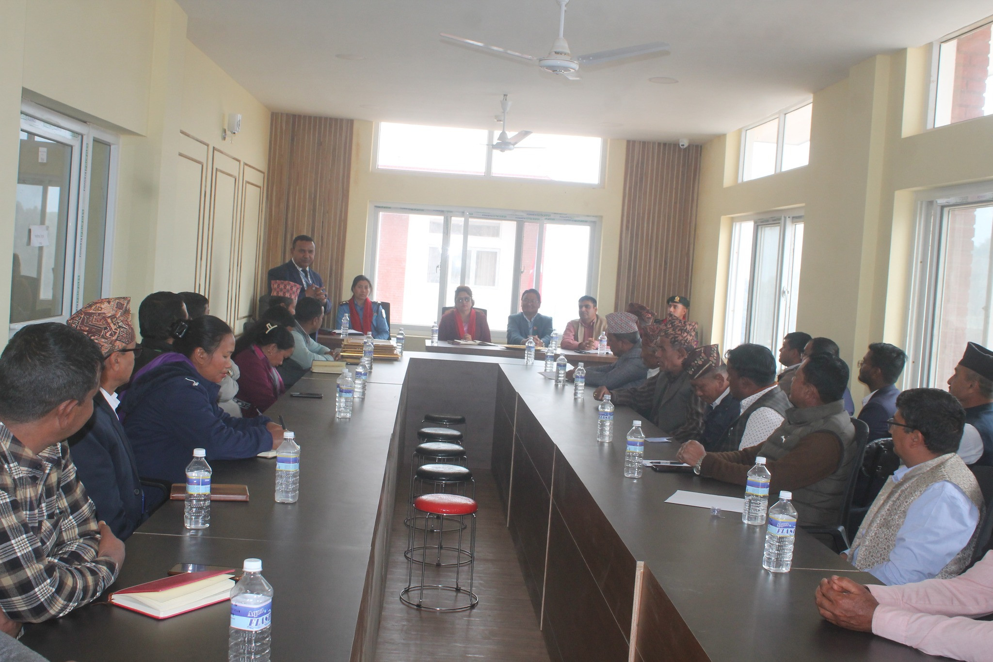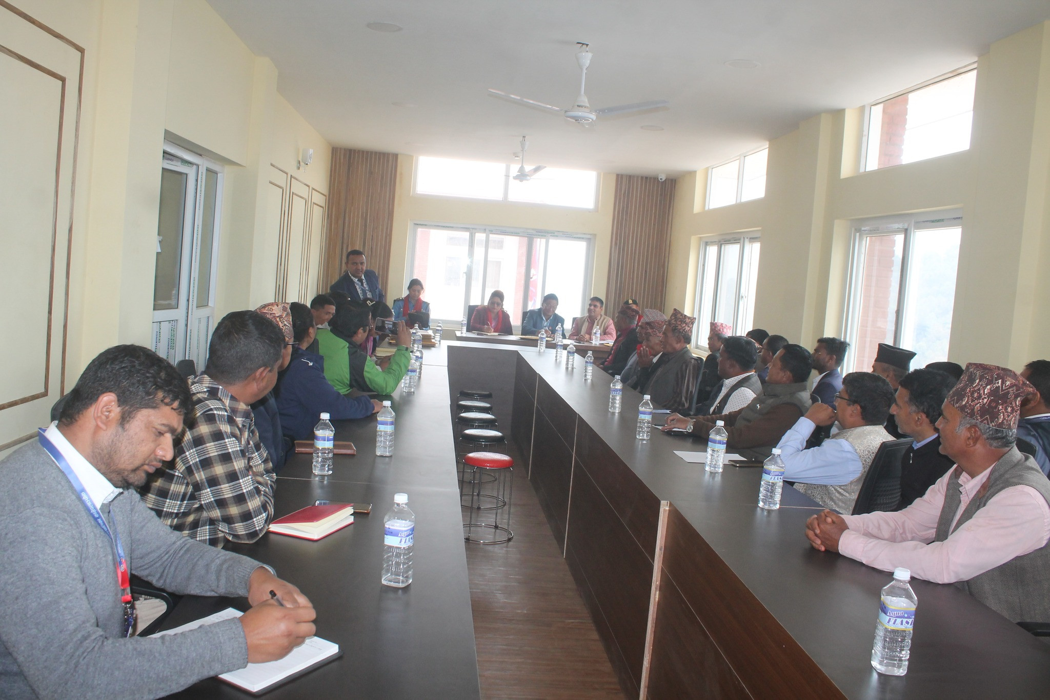 मण्डन देउपुर नगरपालिकामा शान्ति सुरक्षा र सेवा प्रवाह विषयमा स्थानीय तहसँग प्रमुख जिल्ला अधिकारी कार्यक्रम । मिति २०८०/१२/०८ गते