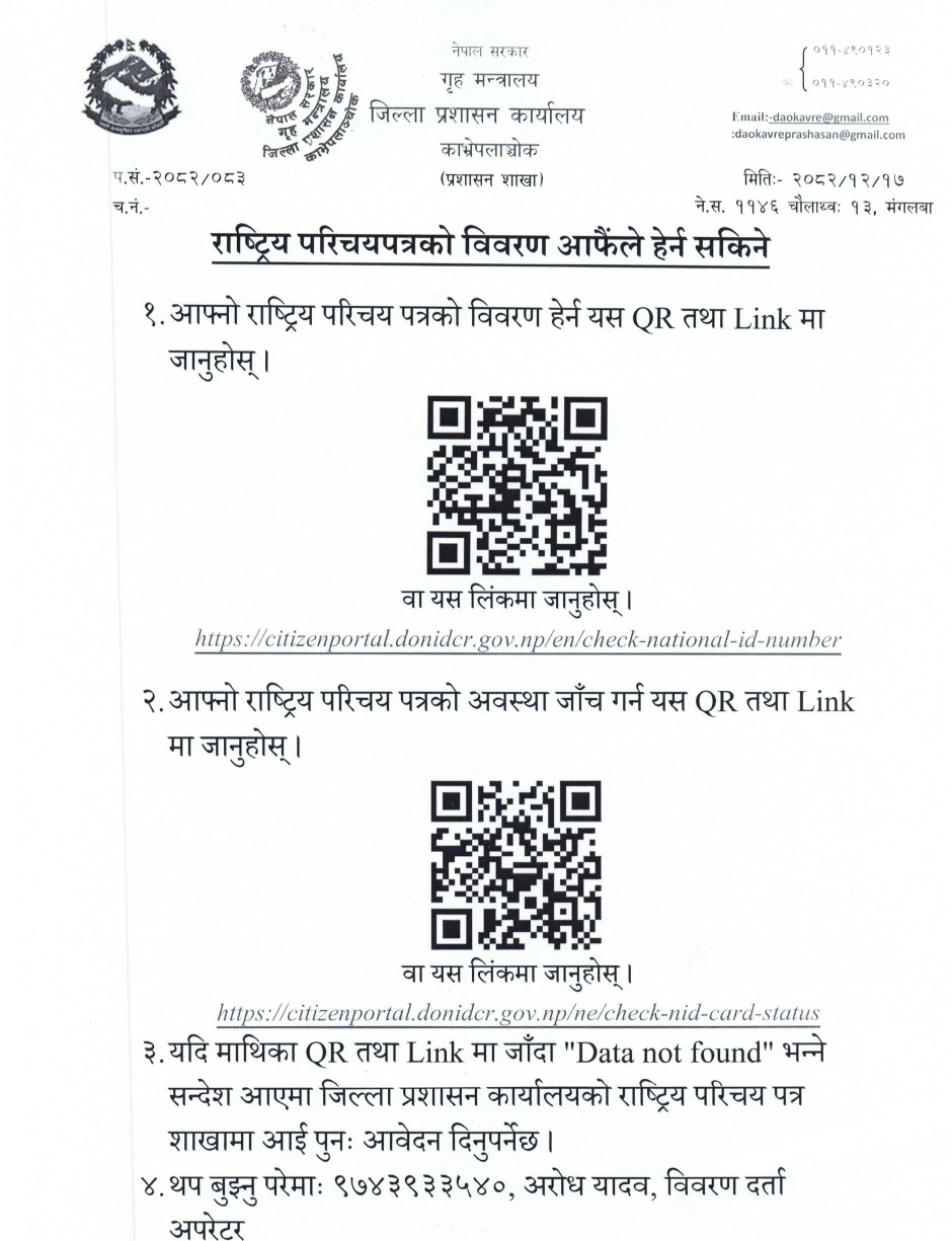 © सर्वाधिकार सुरक्षित जिल्ला प्रशासन कार्यालय, काभ्रेपलाञ्चोक
