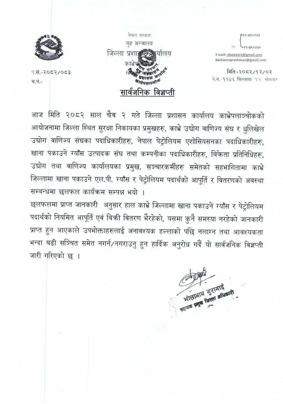 © सर्वाधिकार सुरक्षित जिल्ला प्रशासन कार्यालय, काभ्रेपलाञ्चोक