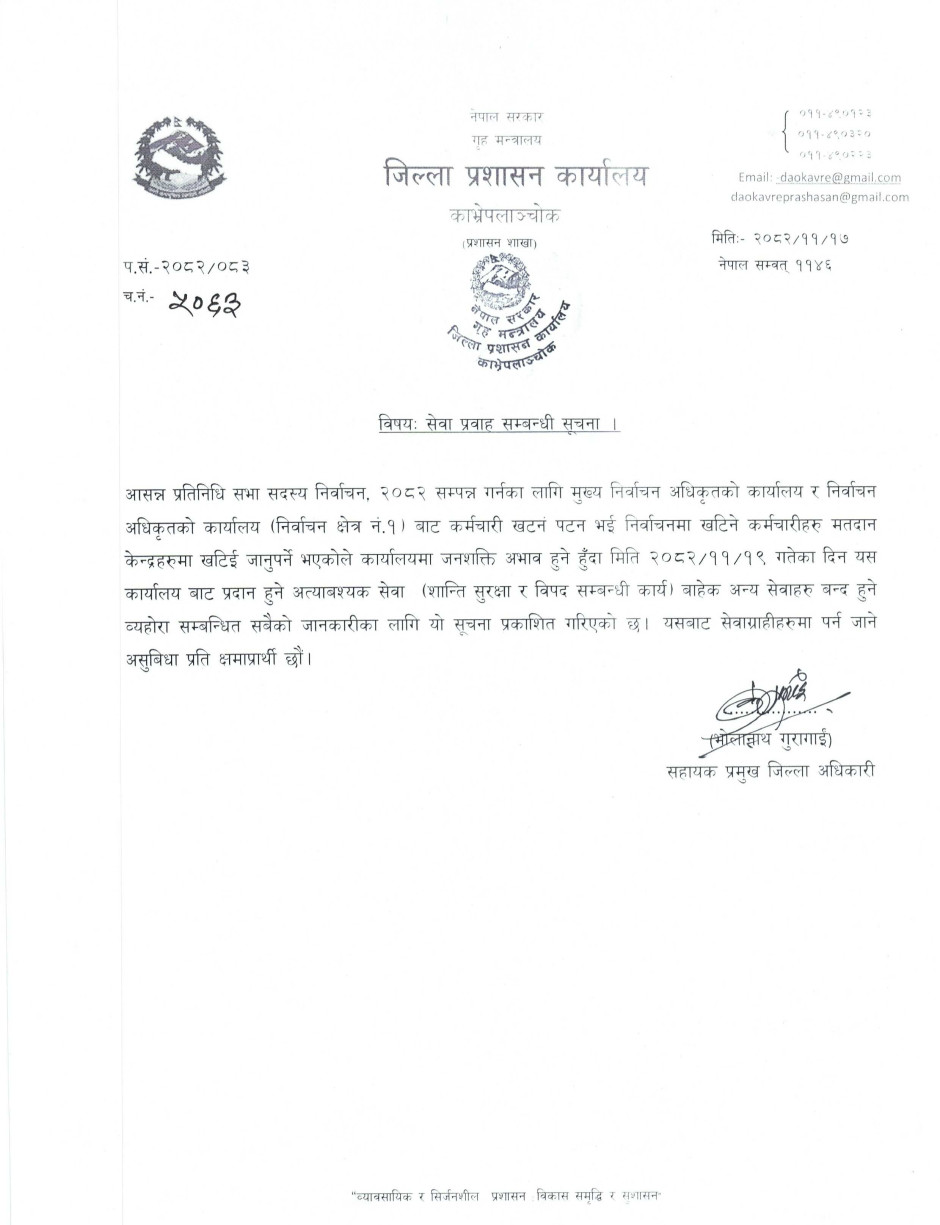 © सर्वाधिकार सुरक्षित जिल्ला प्रशासन कार्यालय, काभ्रेपलाञ्चोक