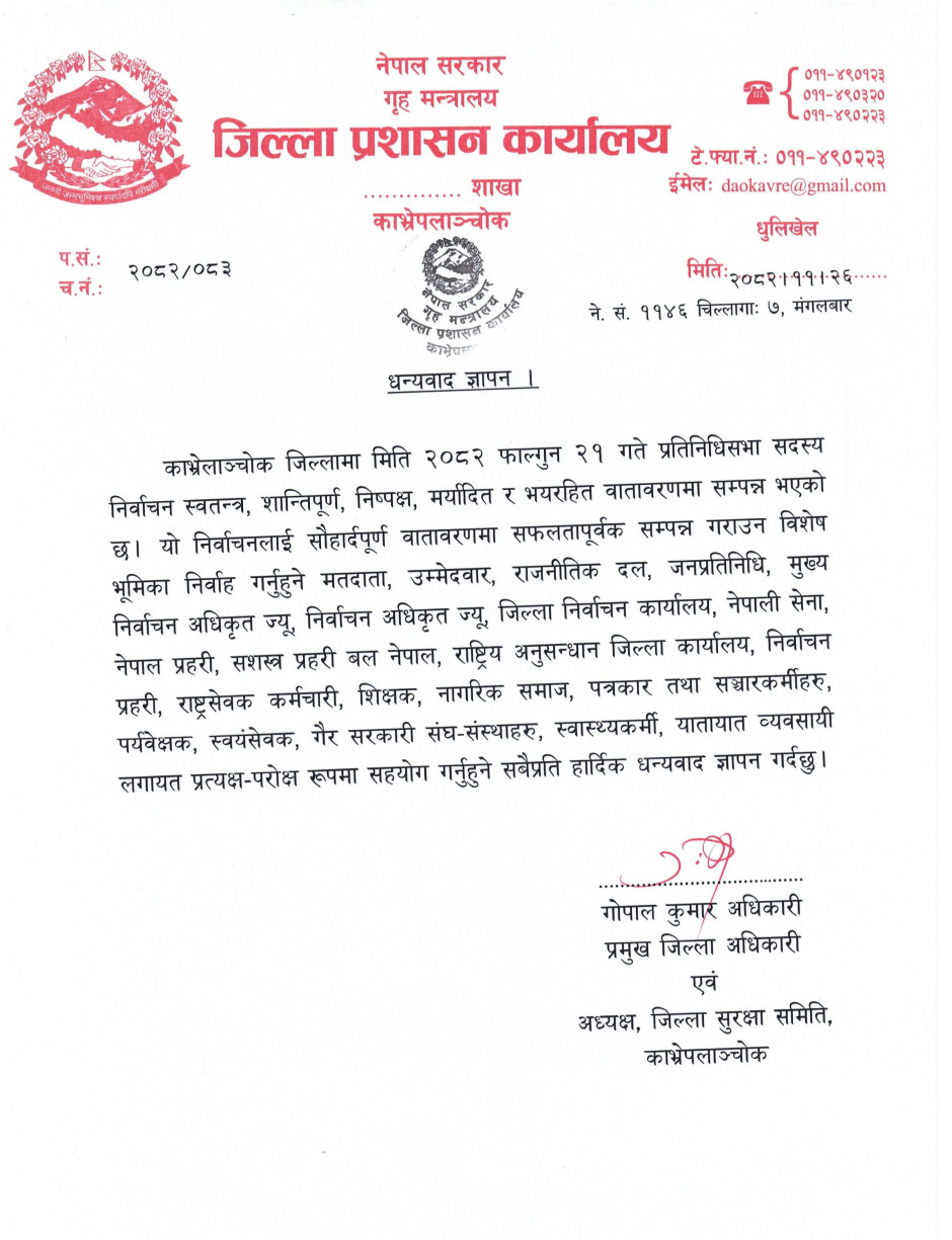 © सर्वाधिकार सुरक्षित जिल्ला प्रशासन कार्यालय, काभ्रेपलाञ्चोक